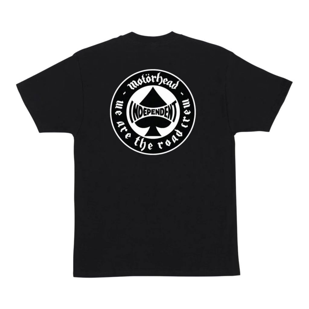 The Independent Motörhead Spade men's regular fit short-sleeve t-shirt features small front and large back Independent Motörhead Spade artwork printed in soft hand ink.