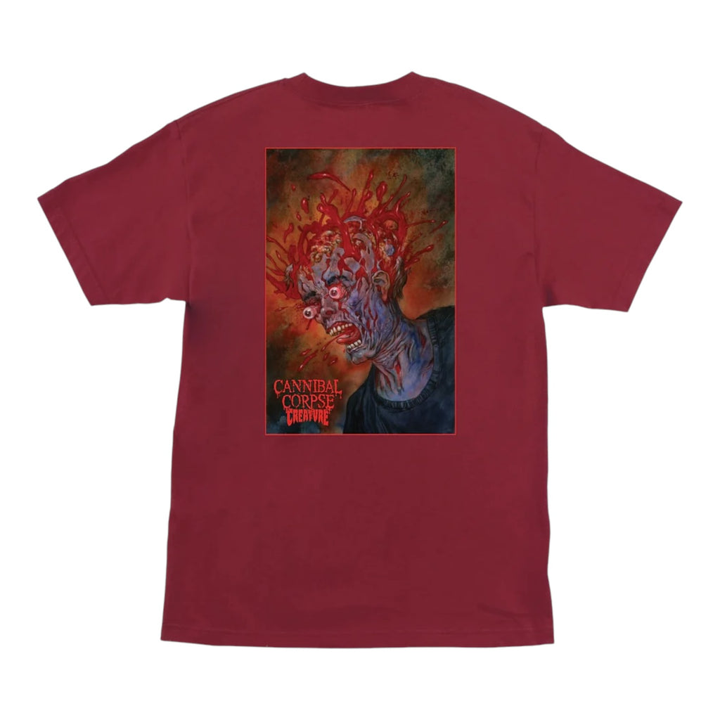 The Creature Cannibal Corpse men's regular fit short-sleeve t-shirt features small front and large back Creature Cannibal Corpse artwork printed in soft hand ink