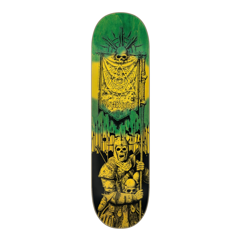 Heel to the Battle Flags of the new 'Messenger' Pro Series featuring our battle-tested VX Eternal Destruction construction and 2 color hand stained veneer. Ride to war with Gravette's trusty 8.3", Worthington's go-to 8.6", and now offered for the first time on Creature VX, the almighty 9.25" Team Egg shape with a 14" wheelbase. Victory over the living awaits - art by Paul Parker.