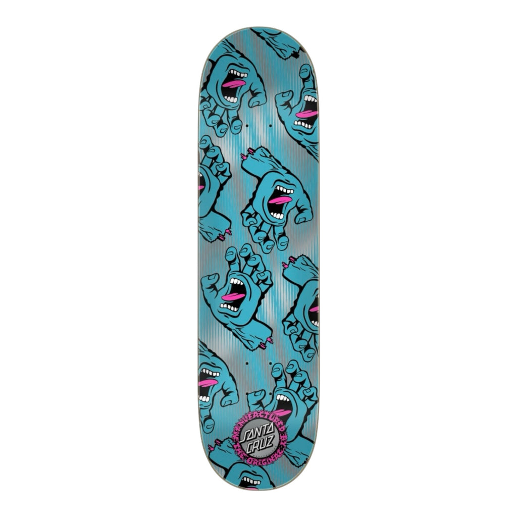 Santa Cruz Skateboards Hands All Over Birch deck featuring spot gloss neon and metallic graphics.
