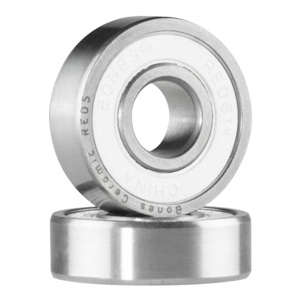 Bones Ceramic REDS® are lighter and provide faster acceleration because the balls weigh much less. They create less friction and are thus faster than Super REDS, with or without lubricant! When you get dirt into your Ceramic Super REDS, the ceramic balls will help to re-polish the steel races flat again, providing a self-healing benefit because ceramic balls are so much harder than steel. Finally, ceramic balls will not rust, further lengthening their life. Ceramic Super REDS use a bone colored shield with laser-engraved outer races for identification.