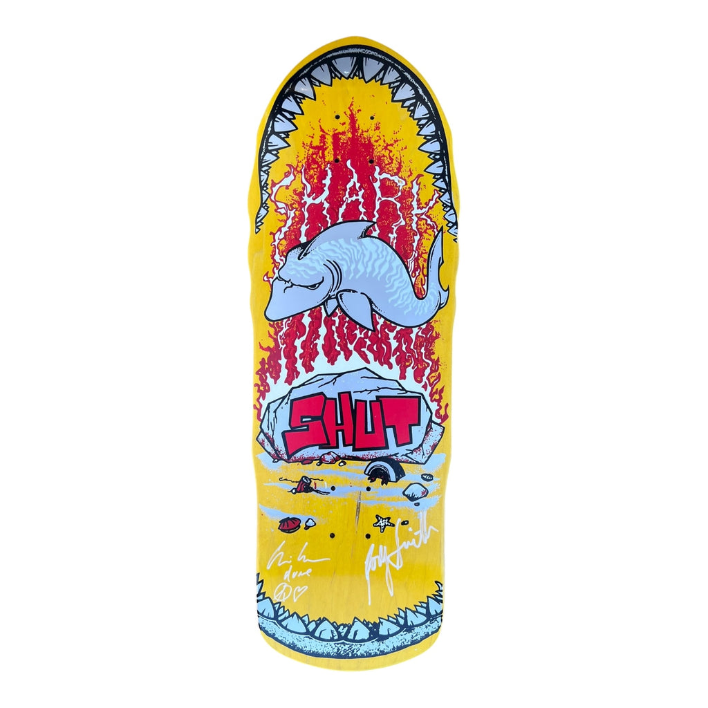 SHUT SHARK YELLOW REISSUE BY PRIME SKATEBOARDS SIGNED DECK 10.0”