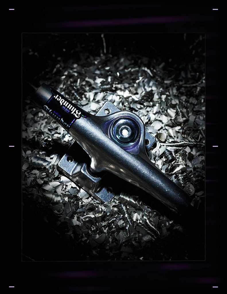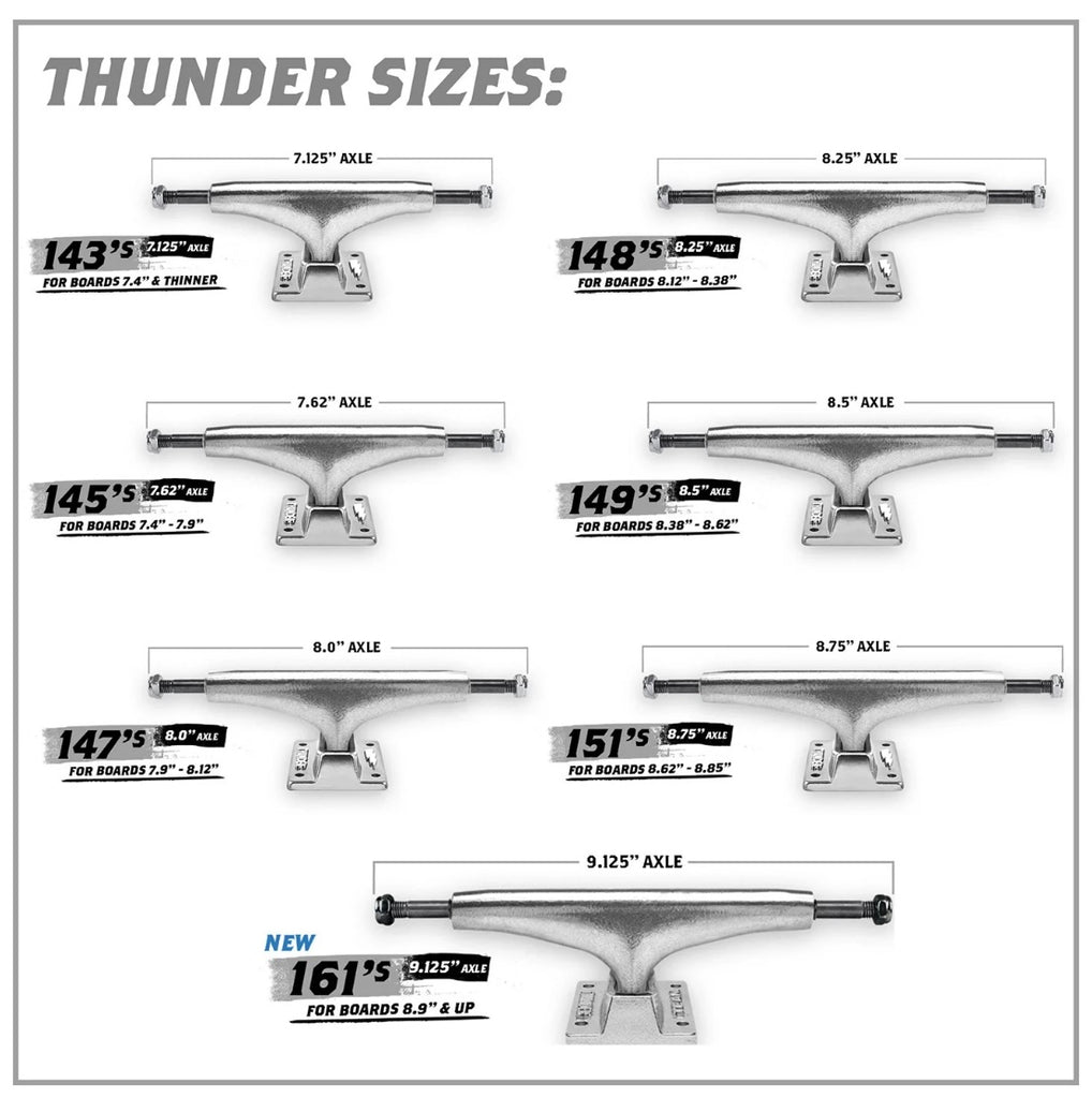 The Thunder Polished Inverted Trucks are the latest innovation out of Thunder. Highly durable with superior performance and optimal grind clearance. These lightweight inverted trucks offer ultra responsive geometry and 45% more grind clearance than standard Team Edition Thunders with an exclusive low-profile head design with no sharp edges to prevent hang-ups.