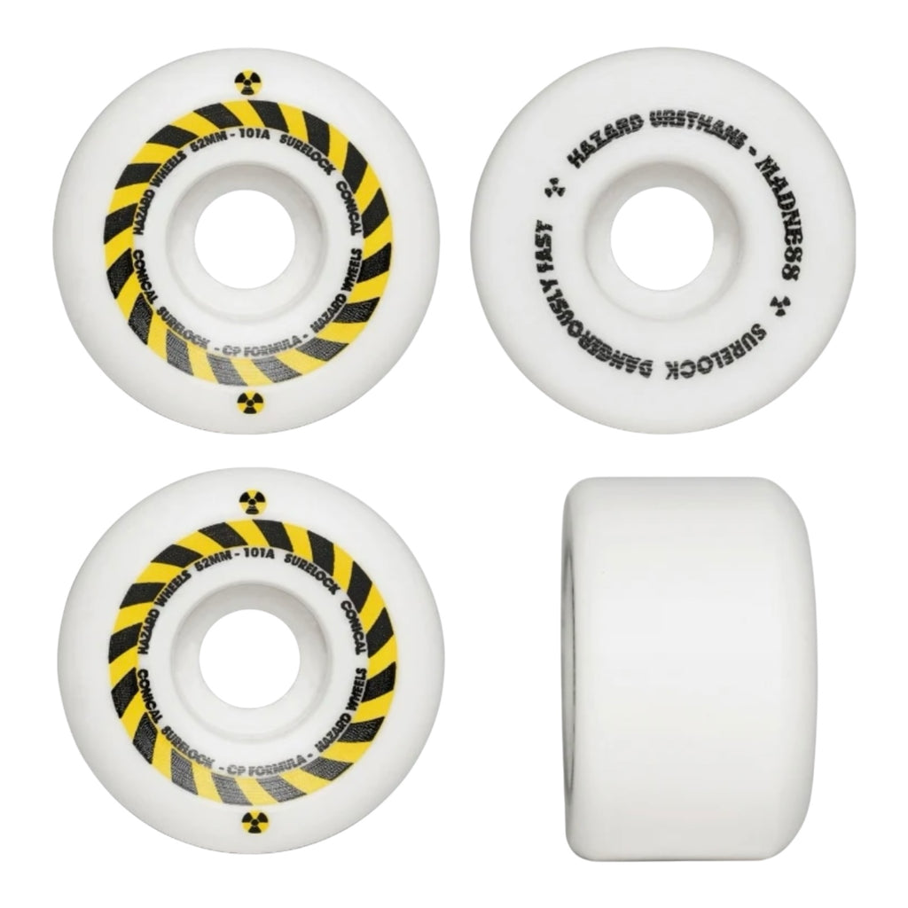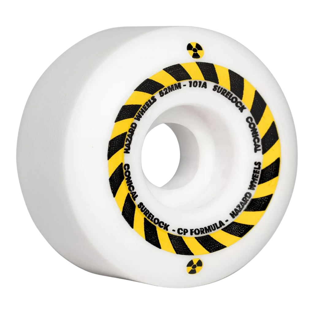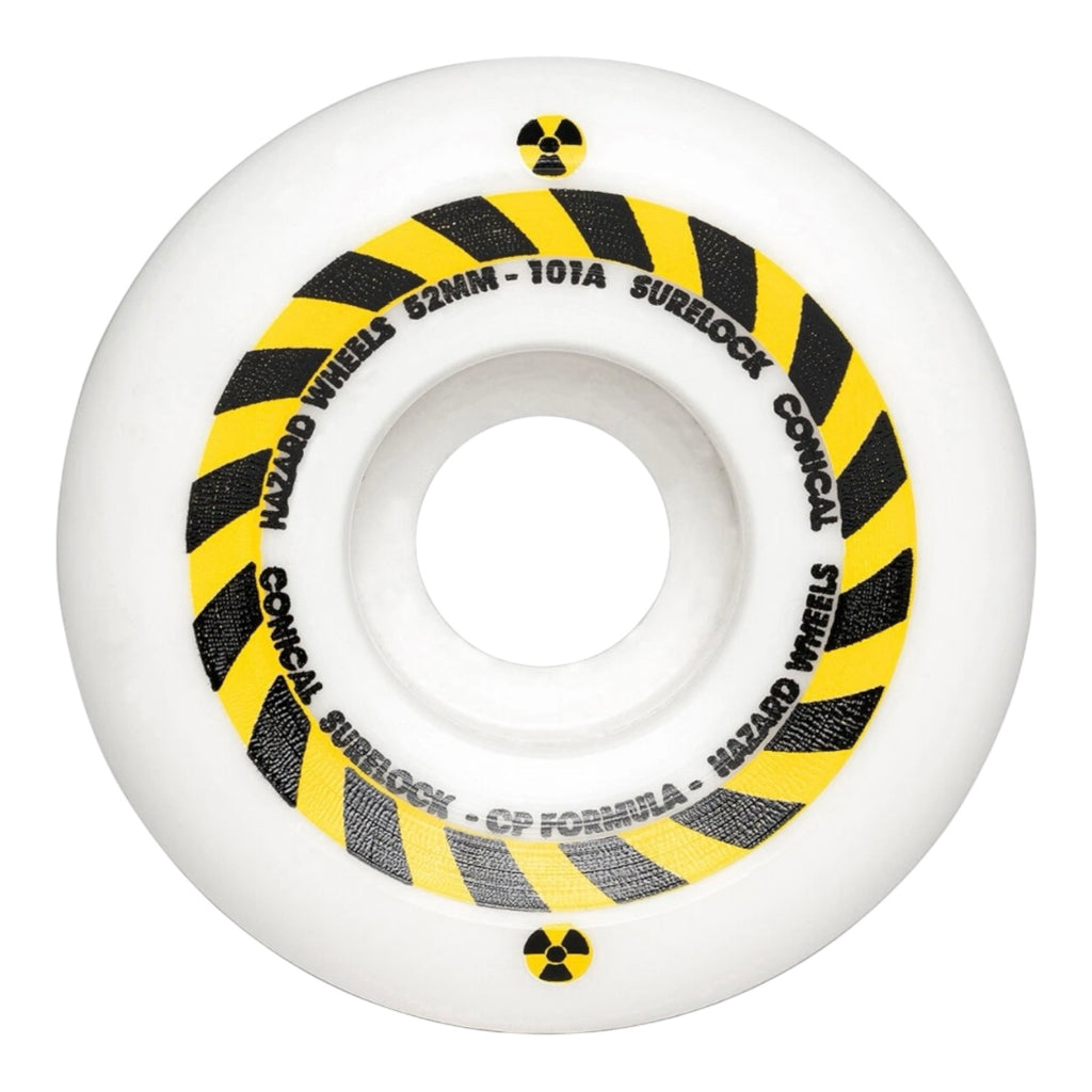 Hazard Skateboard Wheels 54mm Hazard Sign CP Formula Conical Surelock 101A White