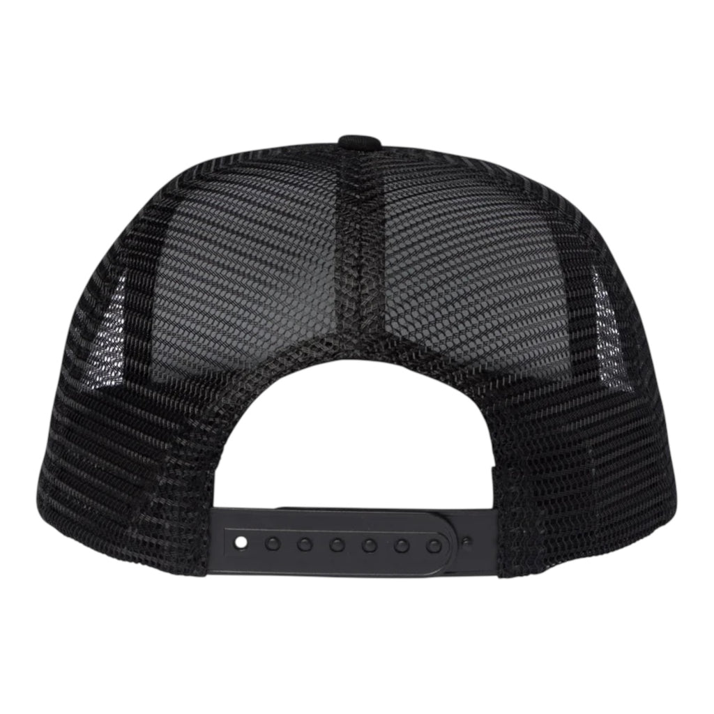 The Creature Logo high profile, 5 panel mesh trucker hat features Creature Logo front screen print, loop label at rear snapback adjuster and custom interior taping.