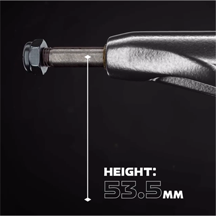 53.5mm tall for optimal performance and wheel clearance with wheels 54mm and under.